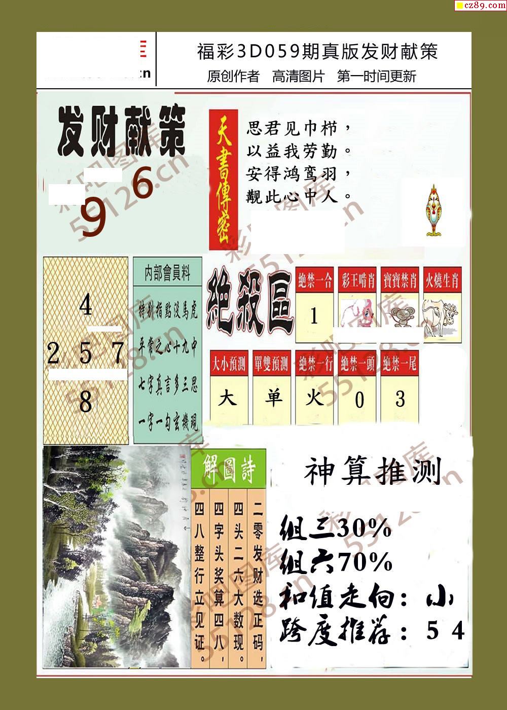 > 发财献策26年059期福彩3d字画报